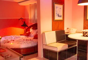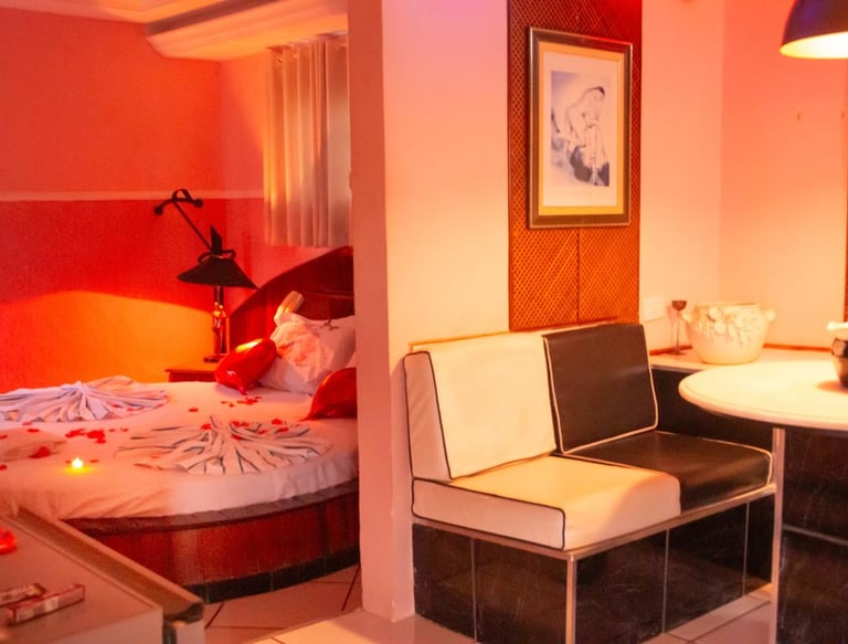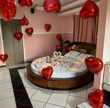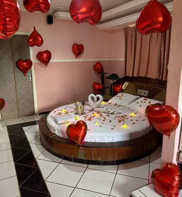 A magia comece antes mesmo do primeiro toque. Transformamos o quarto em cenário para a sua história de amor. Cada detalhe da decoração é pensado para surpreender, despertar desejo e tornar o momento inesquecível.